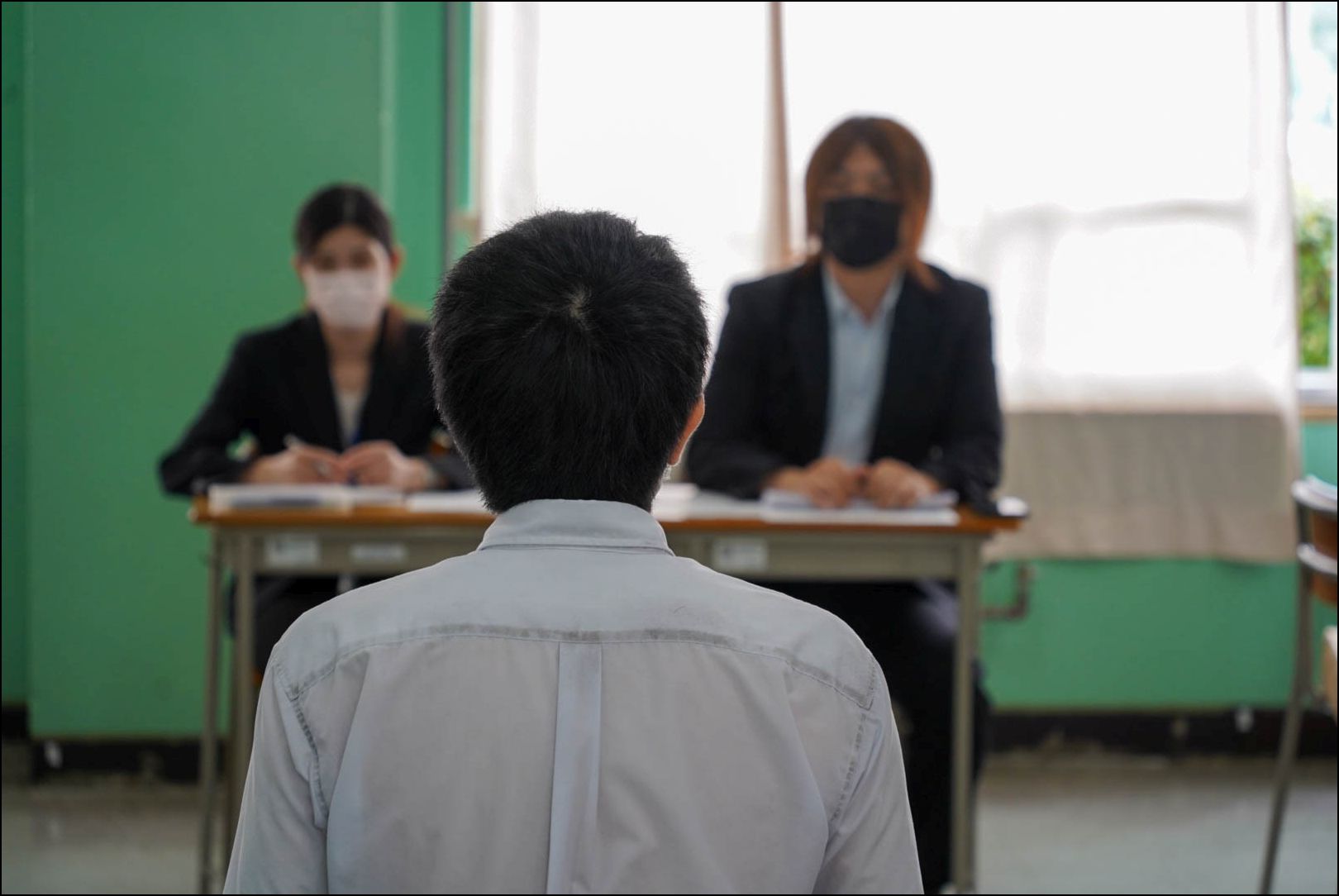 就職講座の最終日(8/22・月)は、地域の企業、4社にご協力をお願いし、社長、支店長、人事担当等の方々に講話、模擬面接をしていただきました。