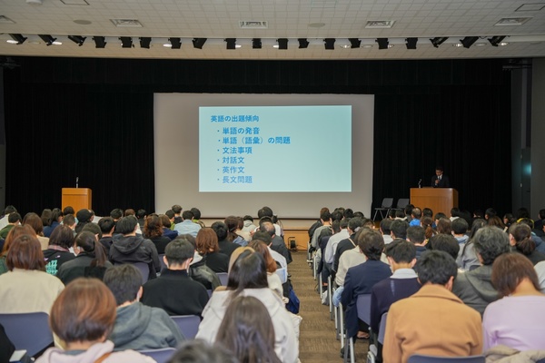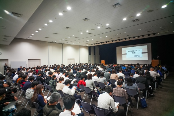 12月9日(土) 14時より、摂津市コミュニティプラザにおいて、第1回入試説明会を開催しました。入試広報室長から入試の概要を説明後、担当教諭から、英語及び数学の入試問題の解説を行いました。