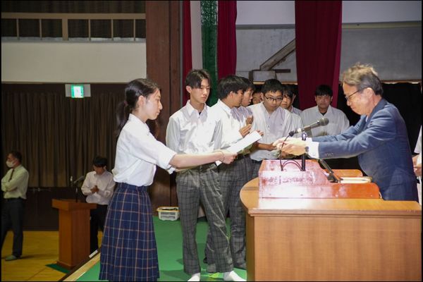 9/12(木)、9/5(木)に行われた選挙で信任された7名(2年生6名、1年生1名)を後期生徒会役員として認…