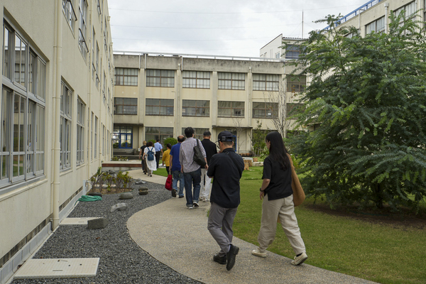 中庭を通って移動