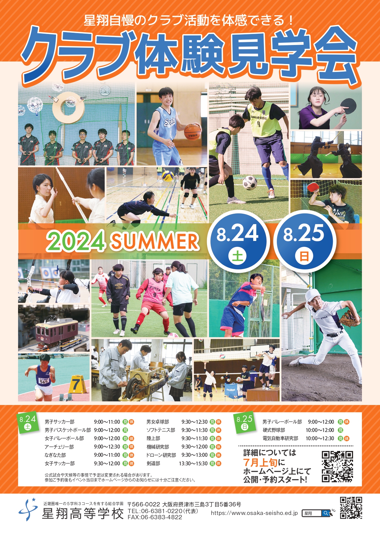8/24~25「SUMMERクラブ体験見学会」のため来校される皆さまへ。
