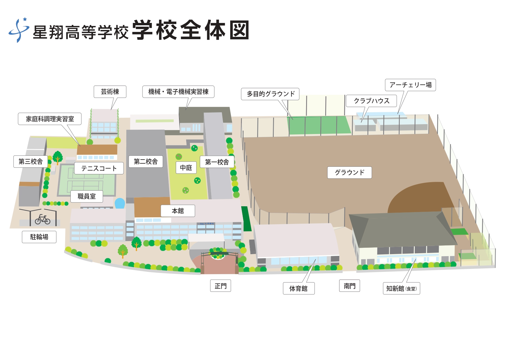 希望される方は上記案内図を参考にいただき、活動中のクラブ活動に支障がないように見学してください。(一部立ち入りできない区域があります)なお、当日は「教員や生徒ボランティアの校内案内」「食堂の販売営業」などは行っておりません。悪しからずご了承ください。