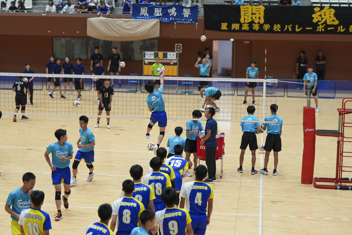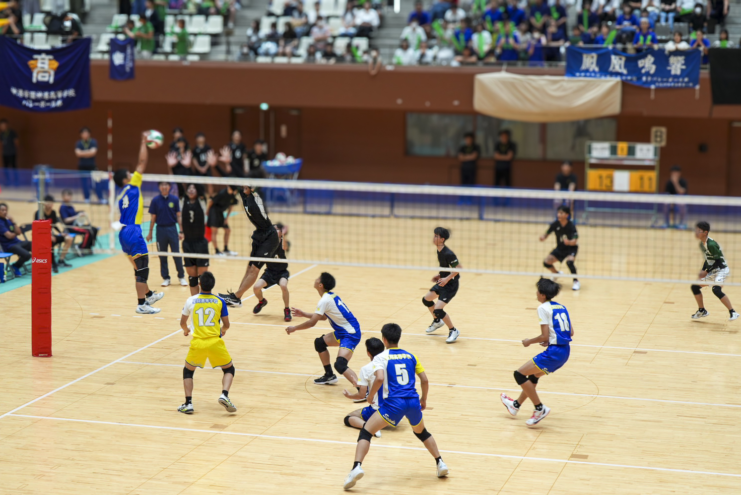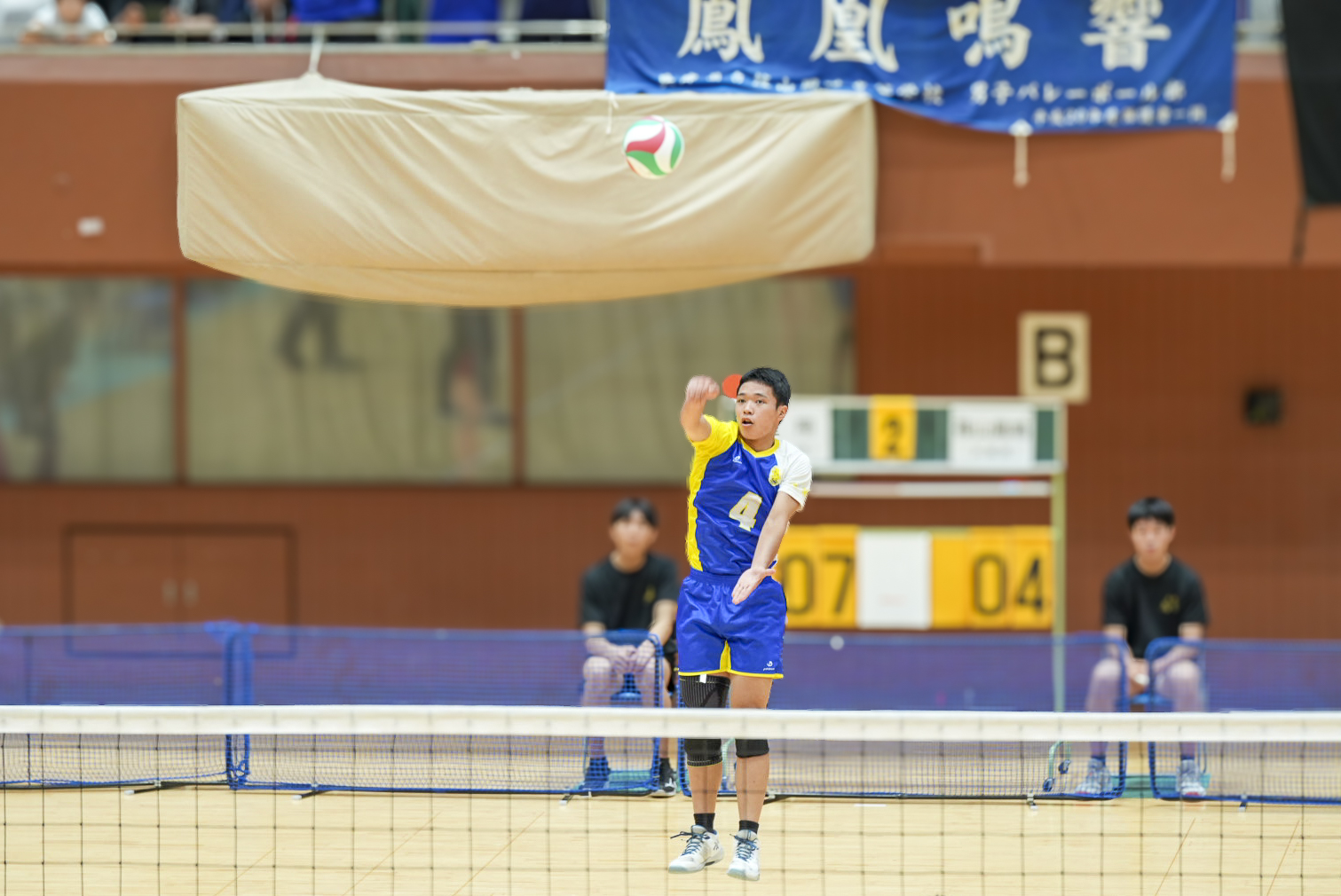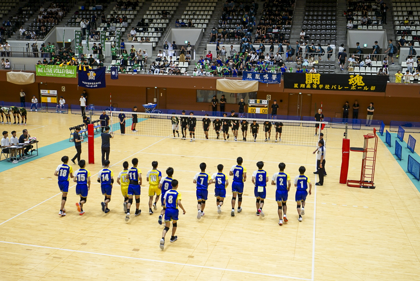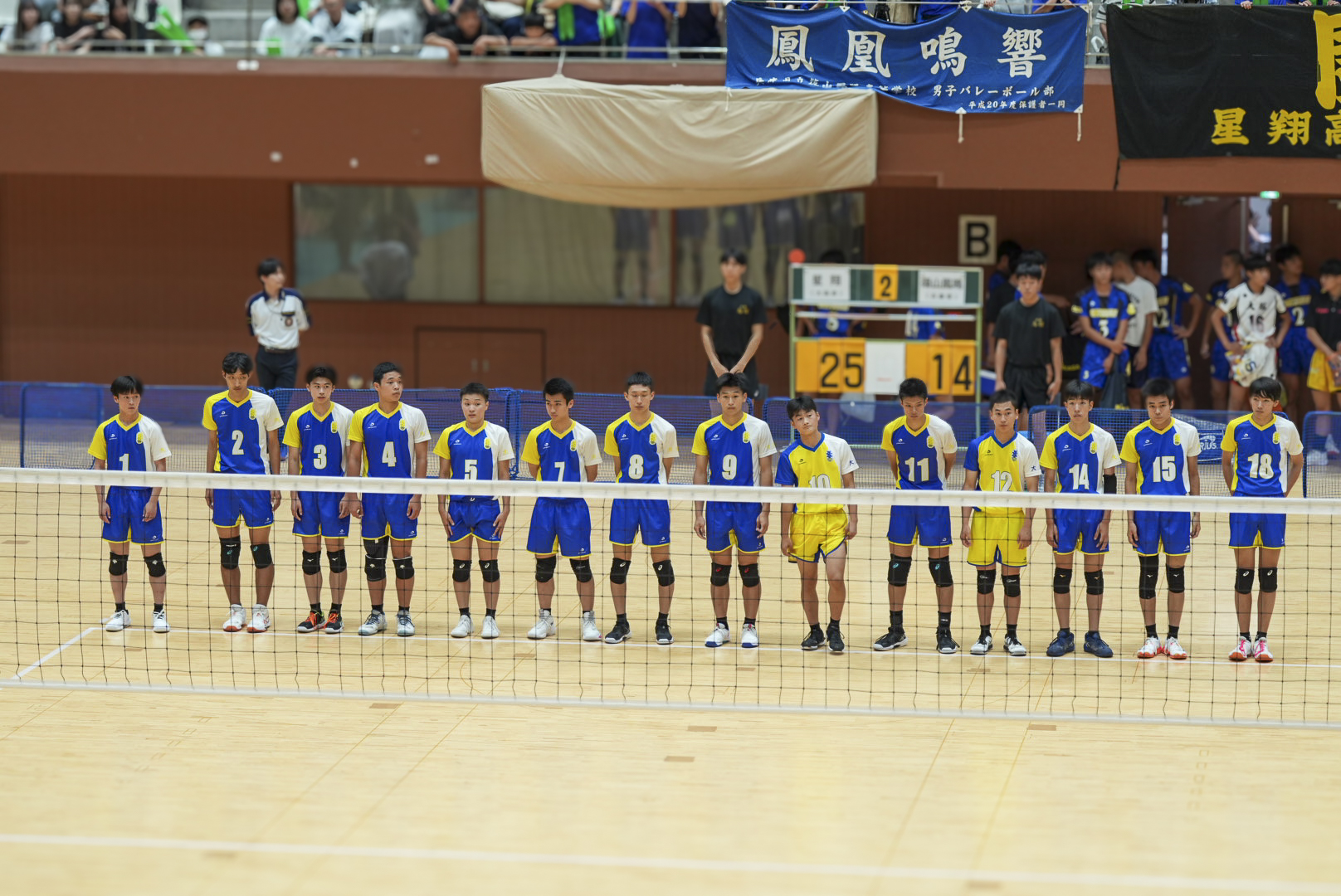 7月19日に島津アリーナ京都で行われた1回戦では、緊張感漂う中でも落ち着いたプレーを見せ、兵庫の篠山鳳鳴高校 に2(25-19,25-14)0で勝利しました。