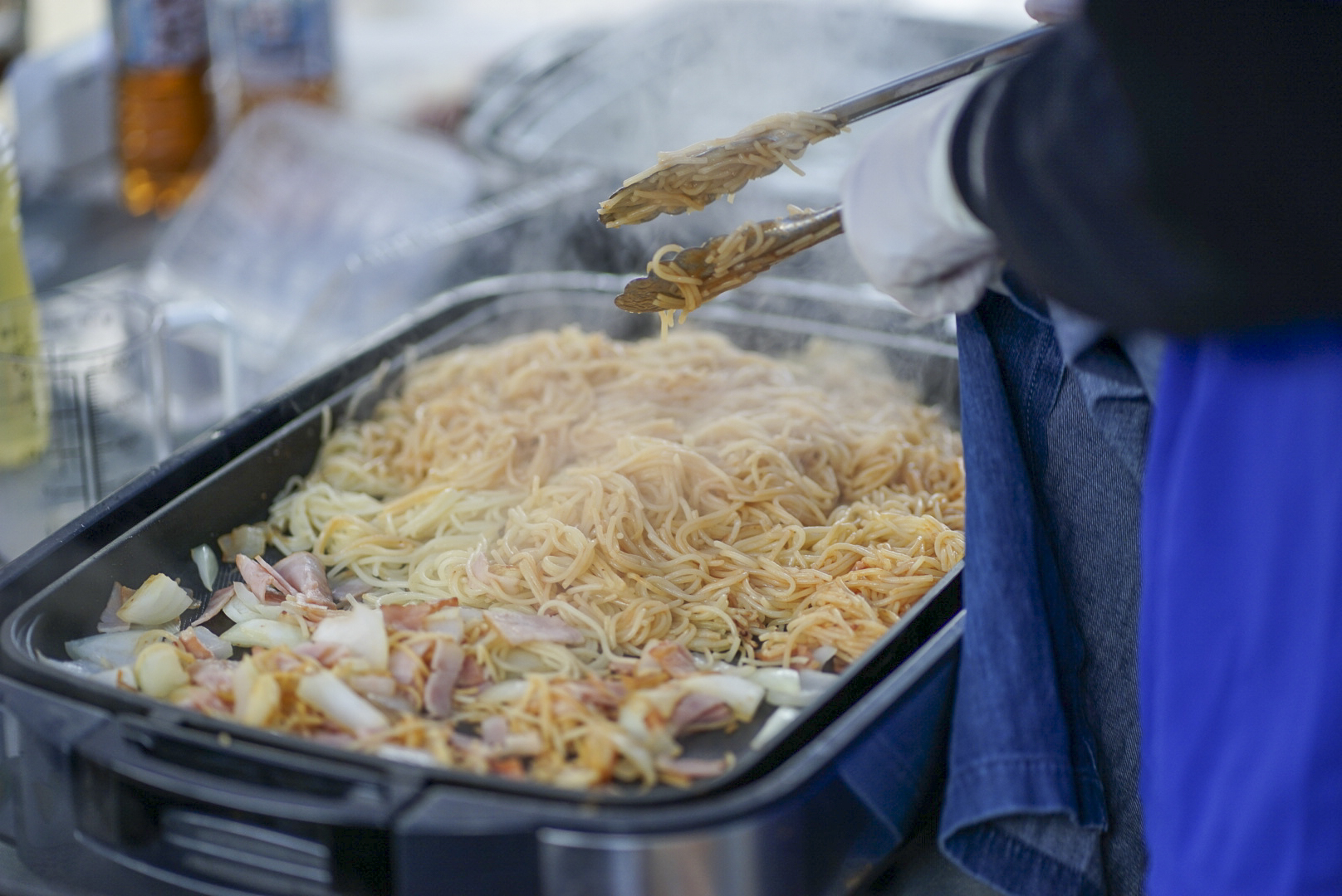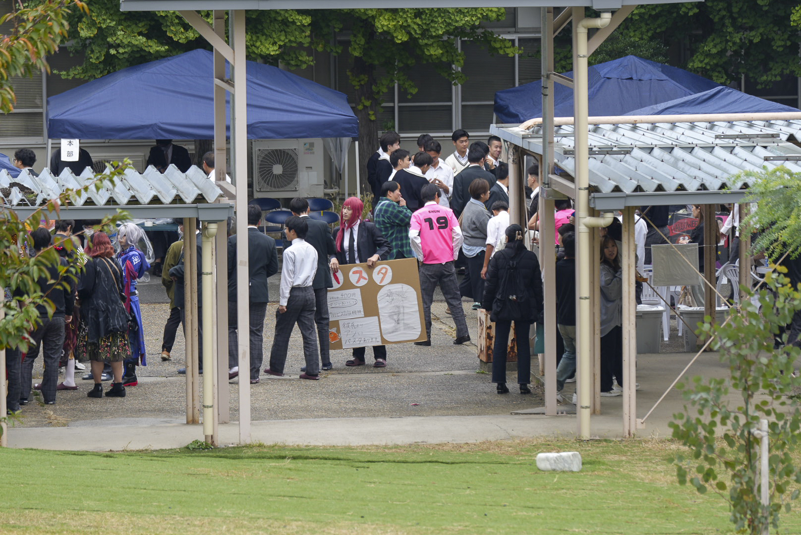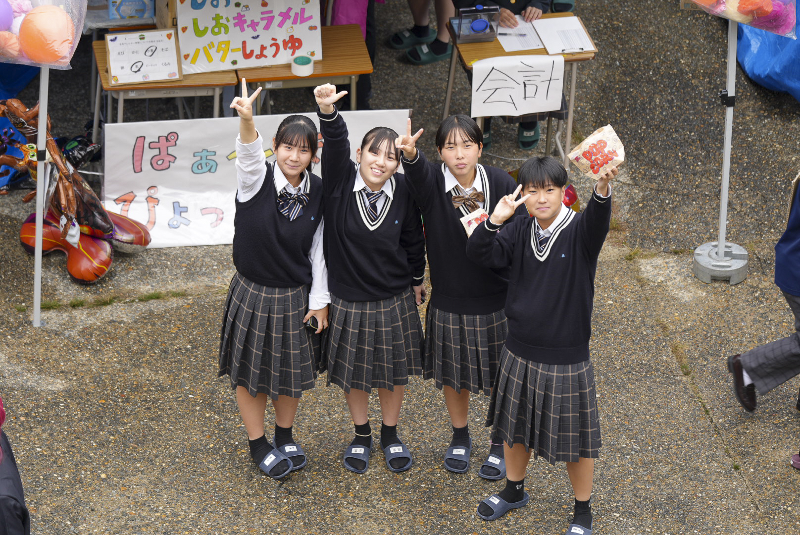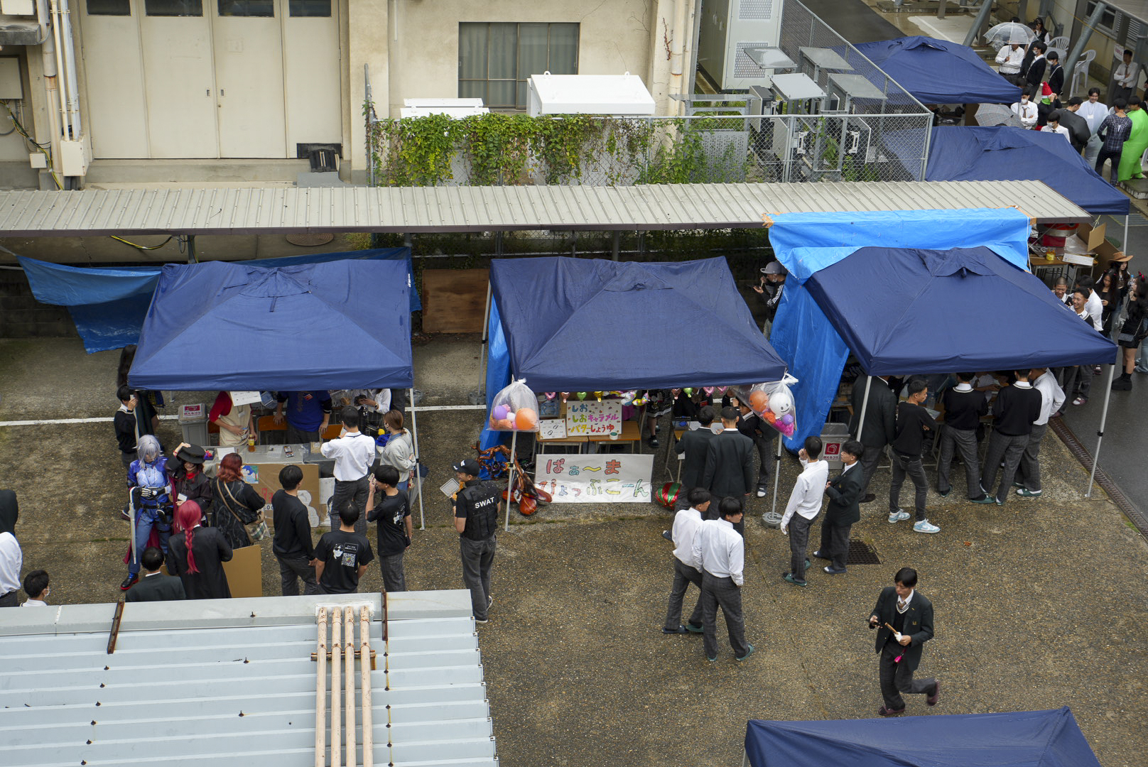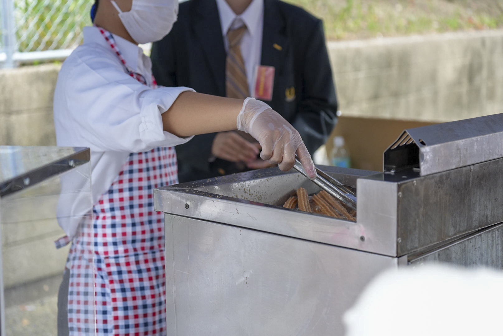 あいにく小雨が降る天候となりましたが、中庭での調理模擬店は大きな支障もなく運営され、多くの来場者で賑わいました。