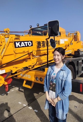 進路に迷っていた頃、もともと重機に興味があったことから担任の先生が港湾職業能力開発短期大学校を紹介してくださり、オープンスクールに参加しました。そこで、女子生徒がホイールローダを運転していたり、実際にクレーンに乗っているようなシミュレーションルームがあったりと、とてもわくわくする環境でした。港の仕事は力仕事がほとんどで女性が活躍できることはほぼないと思っていた私には衝撃的で、同時に魅力を感じました。