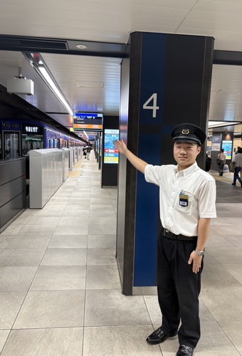 現在は駅員として、接客やICカードの処理などを担当しています。慣れない業務に戸惑うこともありますが、自分の夢を叶えるため日々前向きに業務に取り組んでいます。